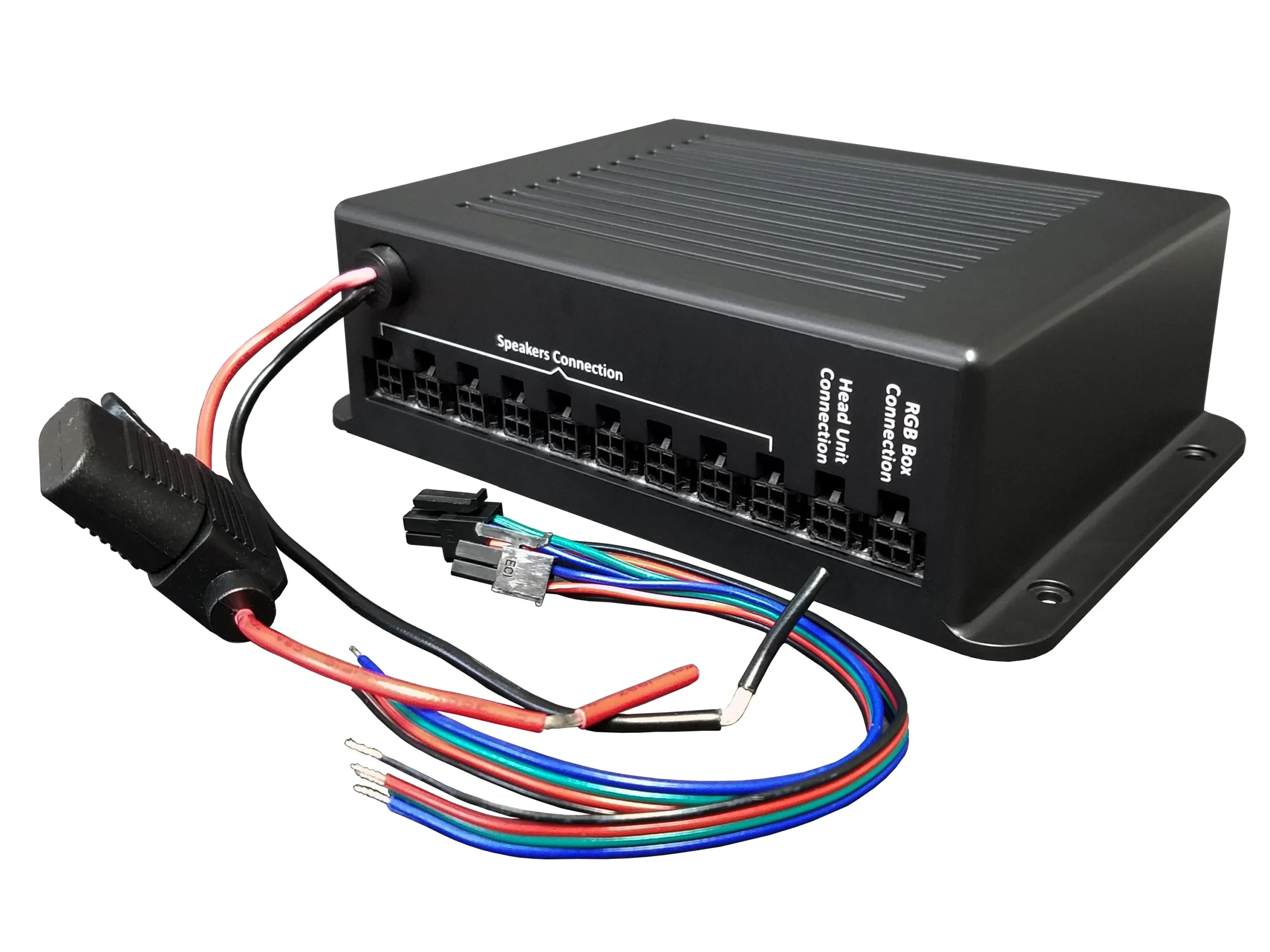 The MIL-LEDPWR module is used in tandem with either the REFPRV415 or KAPPRV515 marine source units from Infinity marine. Control your speaker lighting through the stereo! Once the stereo and module are connected, insert JBL and Infinity marine speakers (must end in 4 pin amp plug) in the module receptacles. Not to worry, all JBL and Infinity marine retail speakers arrive standard with 4 pin amp plugs.