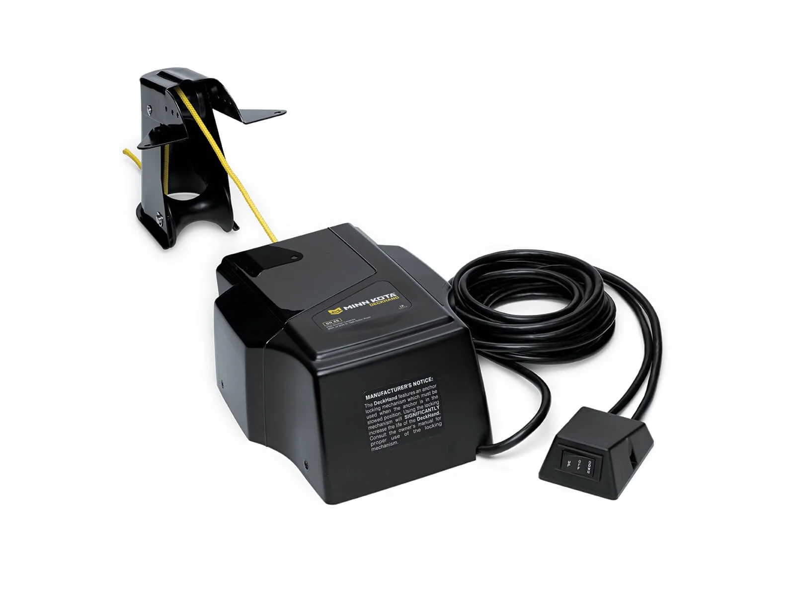 The DeckHand 25R has a 12-foot corded remote control to let you operate your DeckHand from anywhere on the boat. 25-lb anchor capacity (anchor not included). Includes davit for stowing most styles of anchors. Pre-spooled with 60 feet of 800-lb test nylon rope. Runs on 12-volt battery (not included). Get precision boat placement and the ability to stay on the fish as long as you want with a DeckHand electric anchor winch. It automatically raises or lowers your anchor at the touch of a button, and its special anti-drag system senses the bottom to allow for controlled drifting.