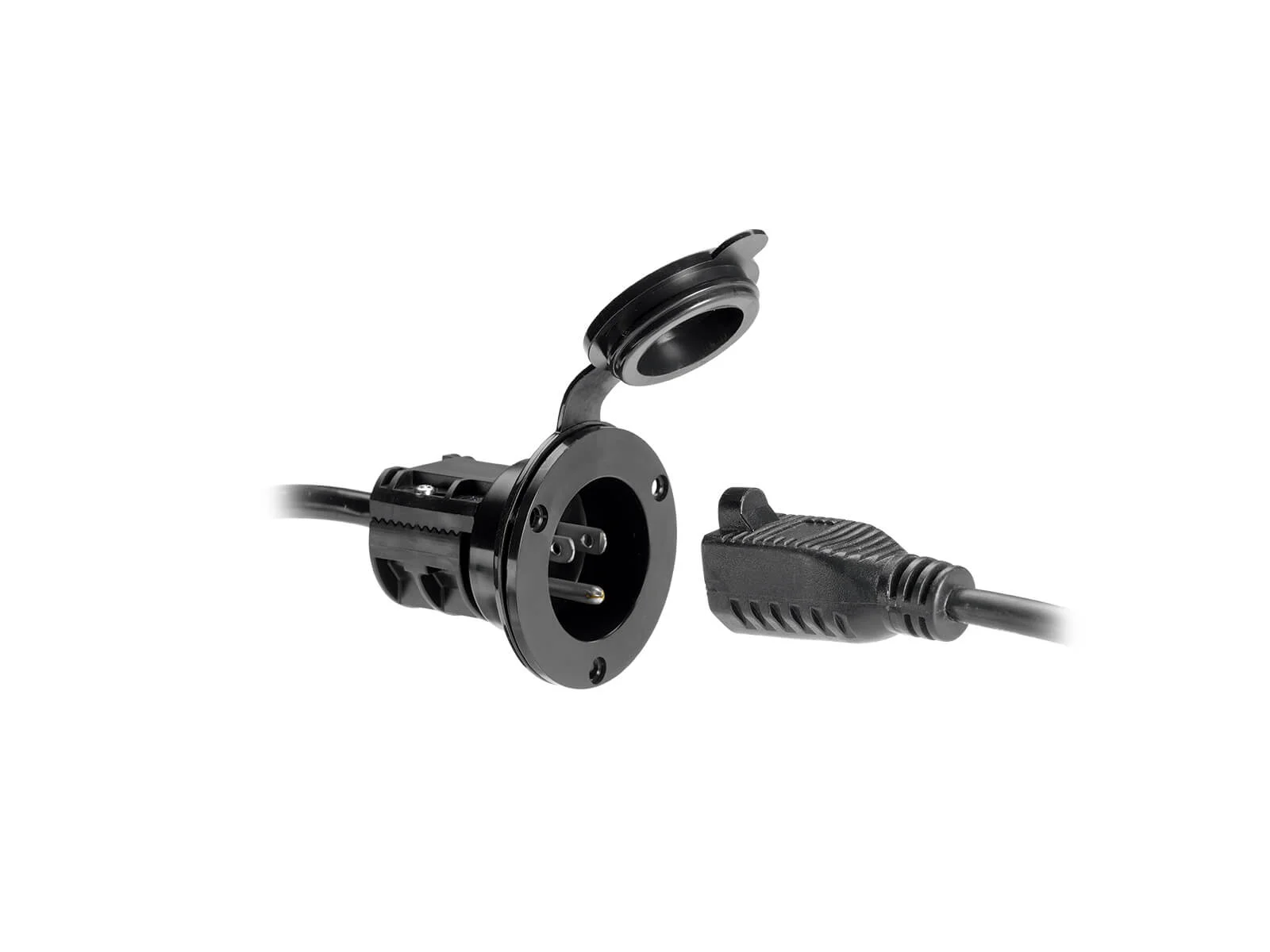 This convenient adapter allows quick thru-hull connections to an AC extension cord — with no cutting or splicing required — using the male AC plug from any of our chargers. The watertight cover and gasket prevent corrosion on the AC plug when it isn’t in use. Color: Black