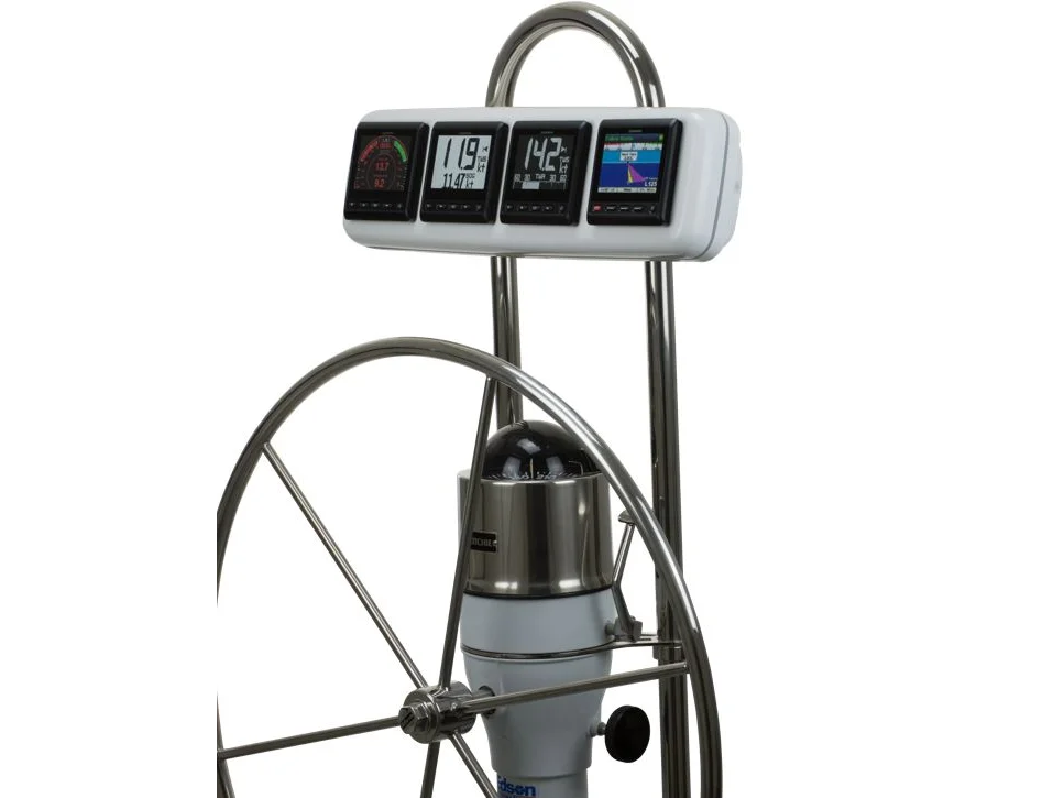 The GP1401 InstumentPod comes Pre-Cut for mounting four Instruments on a 9.5" wide guard. The Pre-Cut hole is 3.6" in diameter found on most populate 110mm square instruments. An InstrumentPod is best mounted on a StraightGuard or on the upper portion of a Double Bend AngleGuard with a SailPod mounted below.