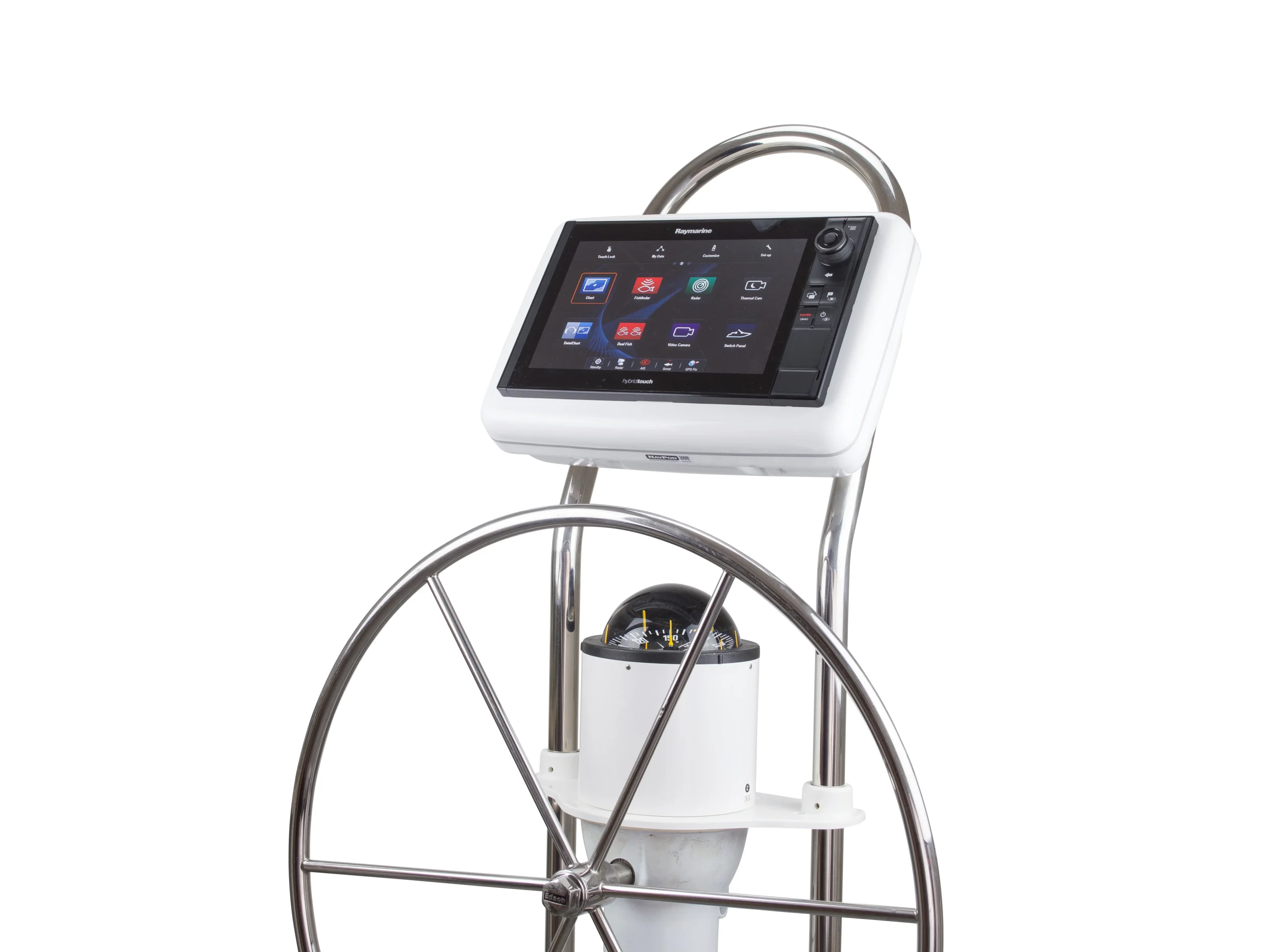 SailPods are for mounting a single Radar or Chartplotter at the helm. Navigation at your finger tips. "Where you need it, when you need it". Sail Pods are the smart solution for mounting your Radar or Chartplotter at the helm where you can easily operate and clearly see the fine details of the screen. NavPods have a high gloss finish, giving you a clean mounting solution while concealing unsightly wires. Nickel Chrome plated tamperproof screws provide a little bling and a lot of security. Designed with a double gasket waterproof seal, NavPods protect your electronics from the harshest of wet offshore boating conditions. A SailPod is best mounted on a Single Bend AngleGuard or use a Double Bend AngleGuard to fit an InstrumentPod on the top vertical section and SailPod below on the angled section.