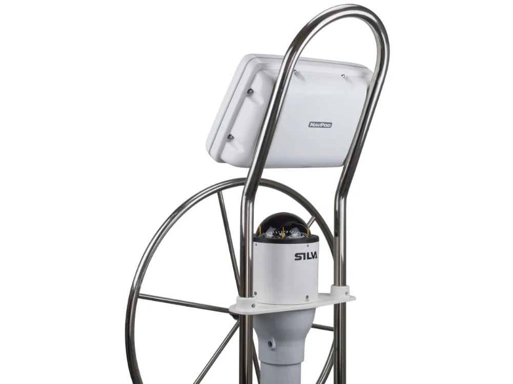 SailPods are for mounting a single Radar or Chartplotter at the helm. Navigation at your finger tips. "Where you need it?when you need it". Sail Pods are the smart solution for mounting your Radar or Chartplotter at the helm where you can easily operate and clearly see the fine details of the screen. NavPods have a high gloss finish, giving you a clean mounting solution while concealing unsightly wires. Nickel Chrome plated tamperproof screws provide a little bling and a lot of security. Designed with a double gasket waterproof seal, NavPods protect your electronics from the harshest of wet offshore boating conditions. A SailPod is best mounted on a Single Bend AngleGuard or use a Double Bend AngleGuard to fit an InstrumentPod on the top vertical section and SailPod below on the angled section.