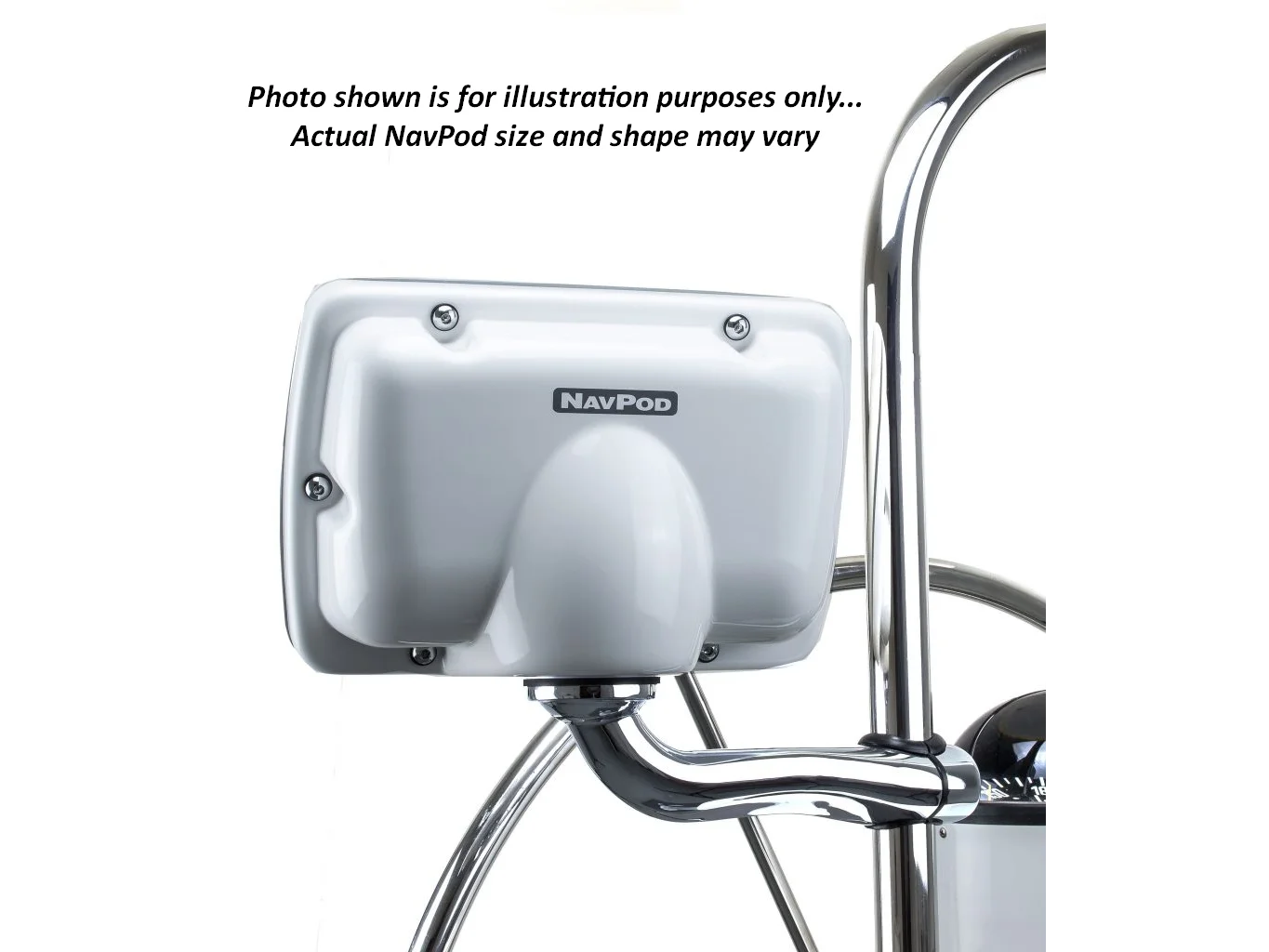 RailMount NavPods are best used for mounting of an autopilot control, sailing instrument, or small chartplotter onto an existing pedestal guard. Fits onto any 1" or 1.25" diameter tube. A Nickel Chrome-Plated Stainless Steel arm is used to mount a NavPod. The NavPod can rotate 180 degrees for easy viewing while sitting under the dodger on a rainy day. All wiring runs from the NavPod, down the center of the stainless steel arm, and into the pedestal guard. This application provides a clean and sturdy installation for electronics, without replacement of the pedestal guard.