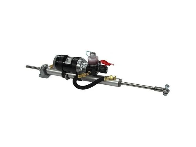 An Octopus Hydraulic Linear Actuator is a simple, effective way to drive the rudder on a boat equipped with a mechanical steering system. The linear actuator is an assembly of an Octopus reversing pump and a marine hydraulic cylinder. This assembly is mounted on the rudder tiller-arm or quadrant. When the autopilot is not in use the cylinder runs freely along with the rudder. When the automatic pilot is in use a solenoid valve on the actuator closes and locks the cylinder. Steering signals from the pilot are now fed to the D.C. motor, which drives the pump to move the cylinder back and forth. De-energized, the solenoid valve immediately disconnects the automatic pilot from the rudder. The actuator has a small translucent oil reservoir, making it easy to check fluid levels. These actuators have only five moving parts. Mechanical simplicity gives our product reliability and ease of service when compared to complicated gear and screw actuators, making our units a favorite for offshore mariners. These actuators are shipped from our factory completely filled with oil and require no additional plumbing.