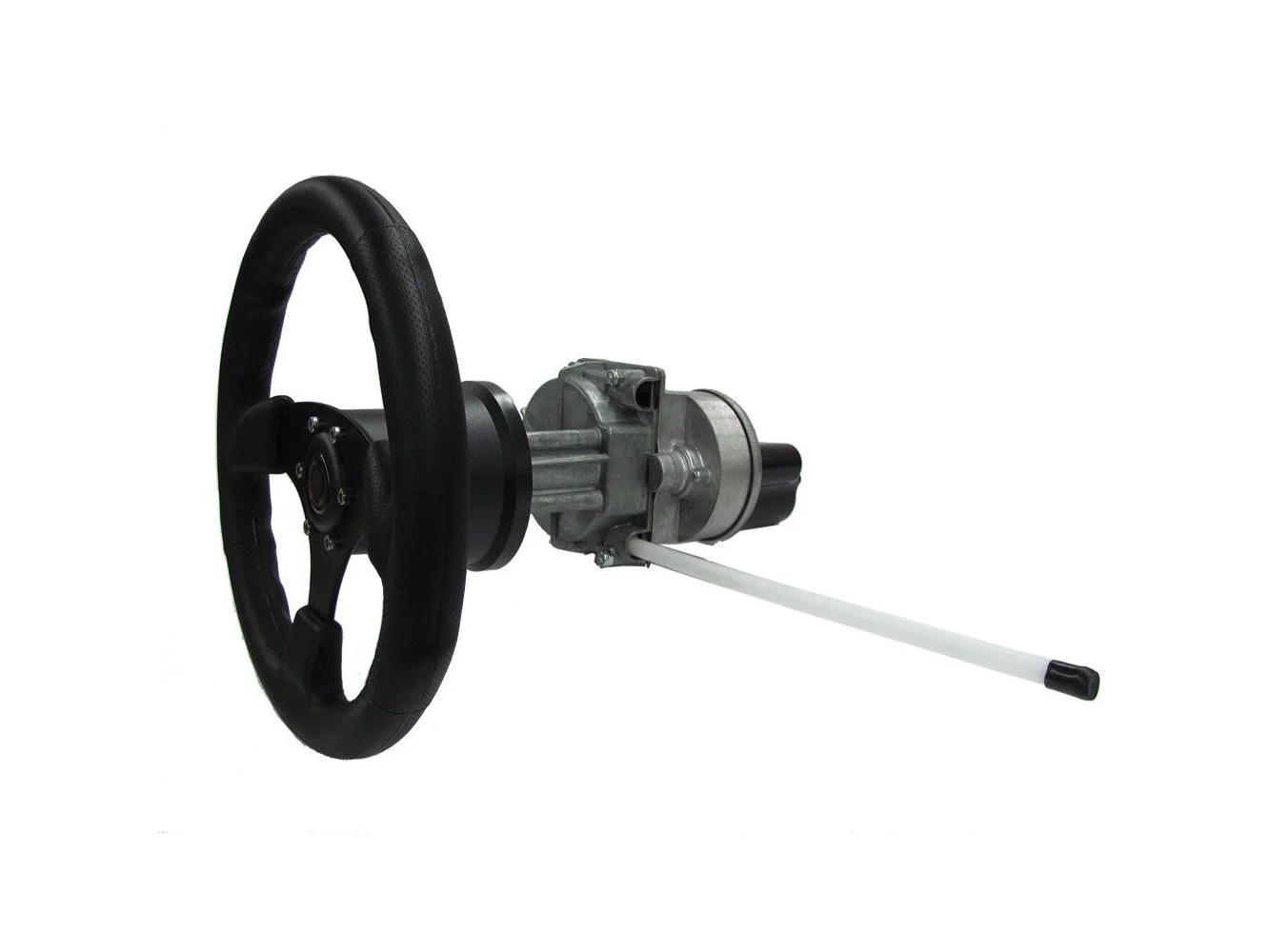 The Straight shaft drive unit replaces the manual drive used on cable steered boats and is mounted directly behind the dash. The drive is directly compatible with the Morse 290 steering helm but comes with its own bezel kit and can be retrofitted in most installations using the cable and steering wheel from the manual steering helm on the boat.