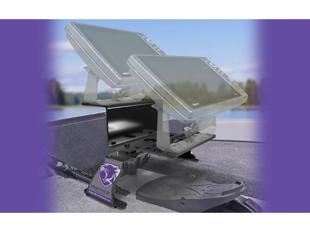 Double the support, double the success with the Panther Dual Electronics Mount. Elevate your fishing game with our innovative dual-unit design, allowing for seamless operation of two fishfinders or GPS units. Built for durability and convenience, it saves deck space while providing unmatched visibility and accessibility for every angler.