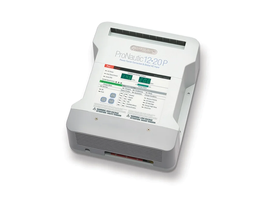 Industry recognized with the 2010 IBEX Innovation Award, ProNauticP employs our Generation 3 ProMar Digital Performance Charging Platform which combines all digital control and softwarebased power conversion technology with global energy management features. ProNauticP addresses the trend of incorporating and using more 12-volt electronics onboard today’s power, sail, cruising and sport fishing boats. Boasting twelve digitally-controlled performance charging profiles with finger tip selection, ProNauticP fully charges, conditions, maintains and re-conditions batteries while extending battery life and maximizing battery reserve power performance. Designed to provide more time on the water enjoying what you like most?boating.