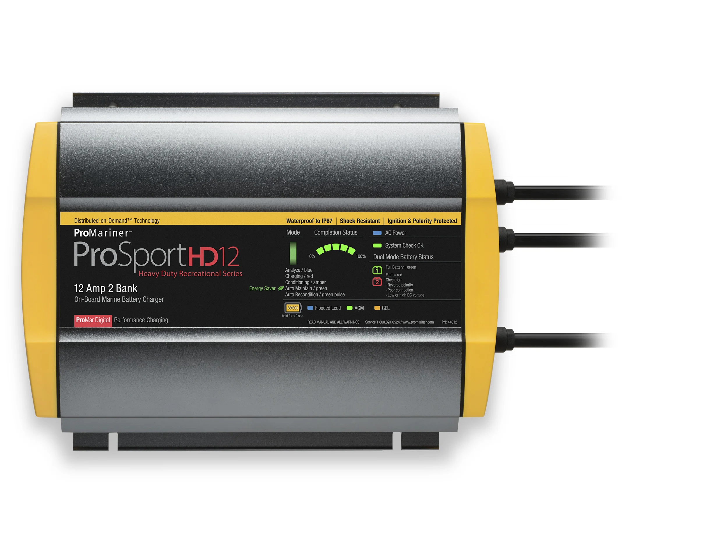 ProSprortHD’S enhanced microprocessor and software provides new digital features including: fuel gauge style Charge Completion Monitor, Charge Mode, invididual Fault indicators and three digitally selectable performance charge profiles for Flooded (lead acid), AGM and Gel batteries. HP AGM profile on ProSport HD 20 Dual only.