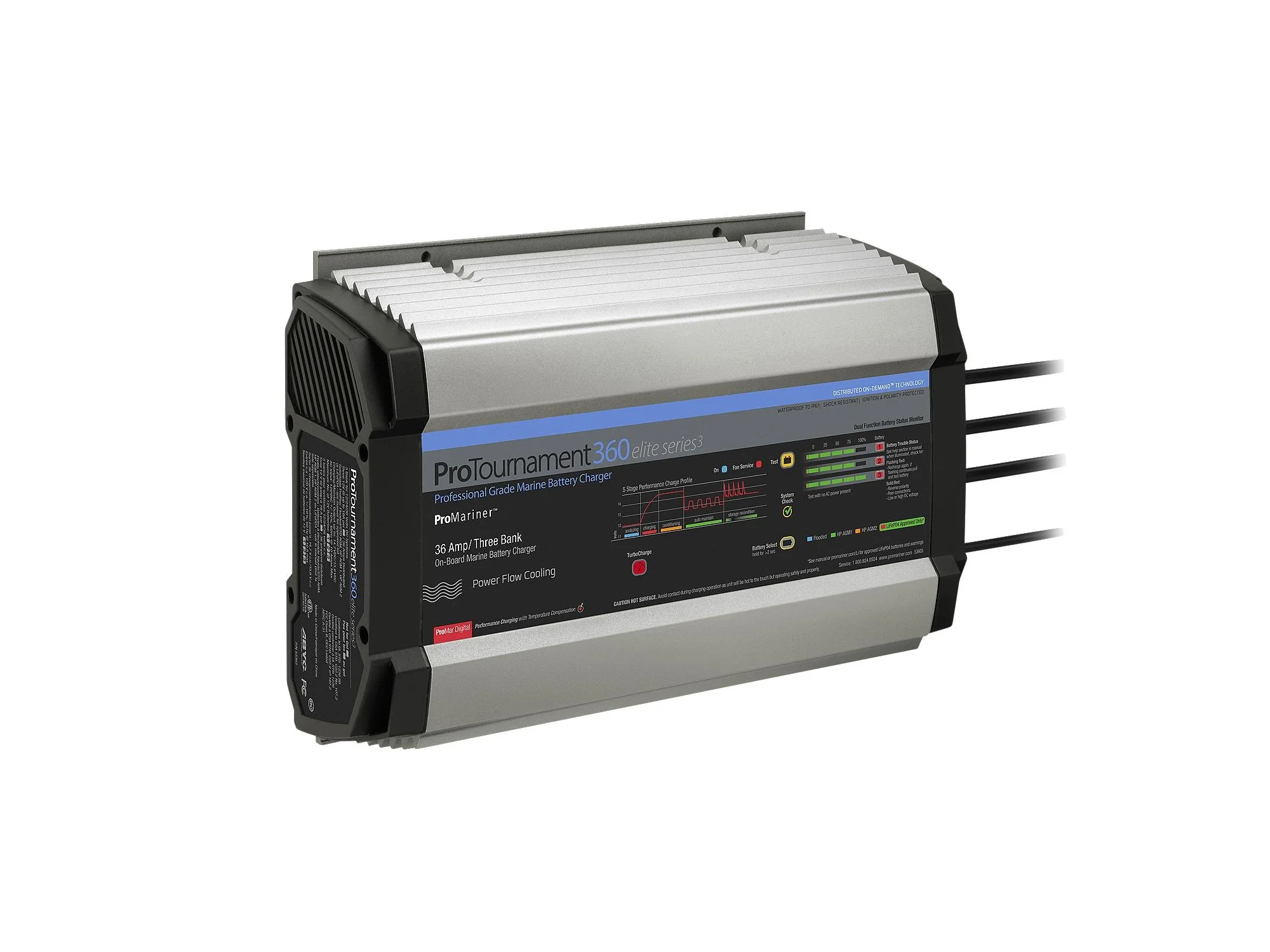 The new ProTournament Elite 3 provides a competitive edge getting you on the water first with power to last. Using advanced thermal modeling, its tri-surface aluminum heat sink delivers true-rated constant current charging amperage for the fastest charge times.