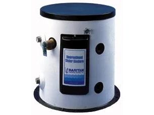 Raritan’s water heaters use an ignition protected thermostat. Although it is factory set to 120°F, it is adjustable from 110° to 160°F and has a safety shut down limit of 190°F. All models and sizes have the plumbing connections on the same side to simplify installation. Hot and cold water connections are " male NPT (National Pipe Thread). Heat exchanger connections are ¾" female NPT.