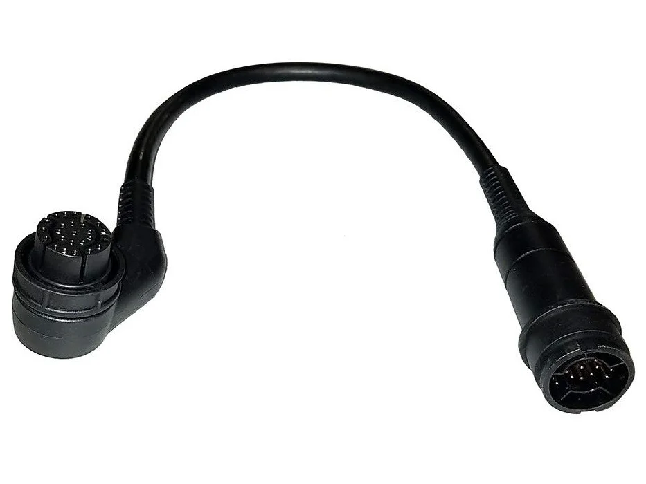 This Raymarine 45 mm right angle adapter cable is ideal for shallow helm installations where cable space is limited. The adapter connects to any 25-pin RealVision transducer and plugs into any Axiom RV or Axiom Pro RVX with a right angle connector.