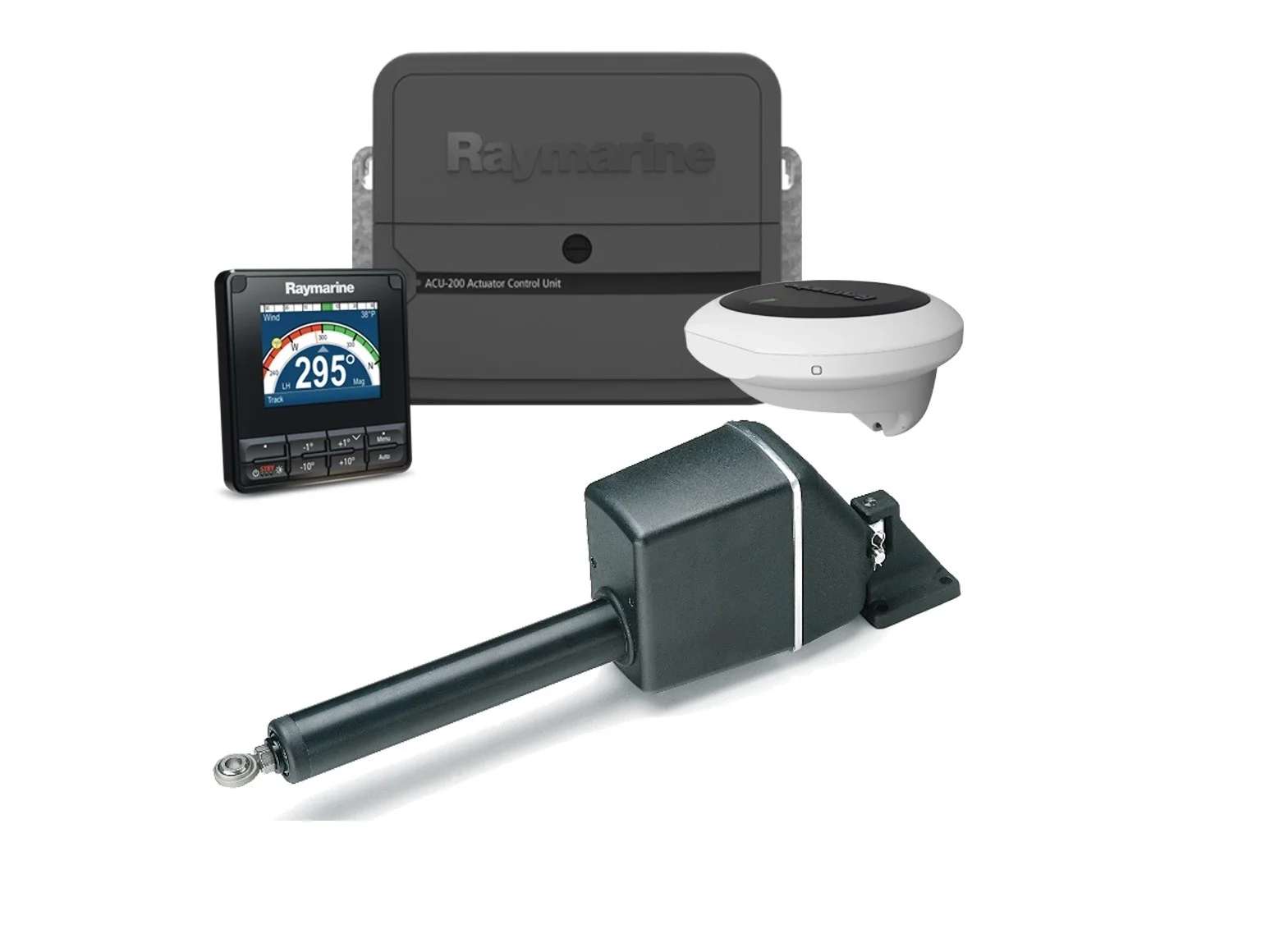 The Raymarine T70158 is a sail linear drive evolution autopilot system package consisting of P70S autopilot control head, EV-1 sensor core, ACU-200 actuator control unit and Type 1 mechanical linear drive. The P70S is a push-button operation controller designed primarily for sailboats. The LED backlighting delivers superior visibility day or night and ultra-low power consumption. P70S also supports group dimming along with i70 Instruments and e7 multifunction displays. SeaTalkng networking enables a single cable connection for power. The Type 1 Mechanical Linear Drive is for mechancically steered vessels up to 22,000lb. It is designed for boats with existing mechanical steering systems and provides powerful thrust, fast hardover times and quiet operation.