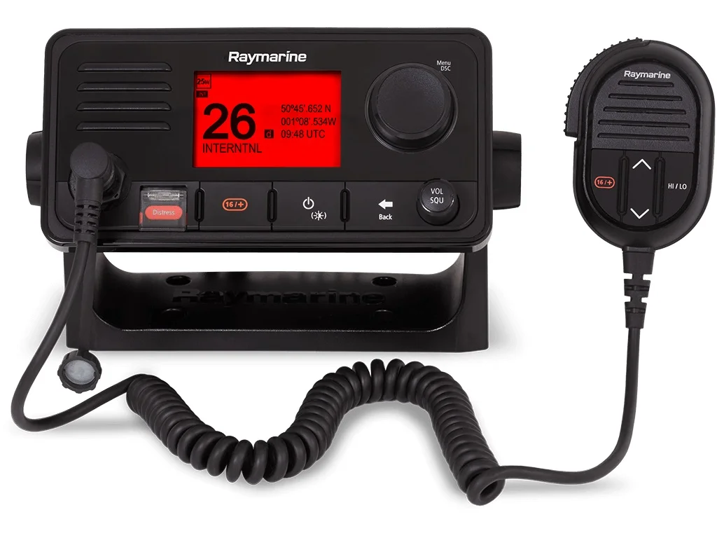 Raymarine’s Ray63 radio comes with oversized controls and a big screen for easy operation offshore. Ray63 is a full-function VHF marine radio with Class D Digital Selective Calling (DSC) and a built-in GPS receiver. The Ray63 also supports 1 wired or 2 wireless RayMic controllers for true multi-station control and intercom capability.