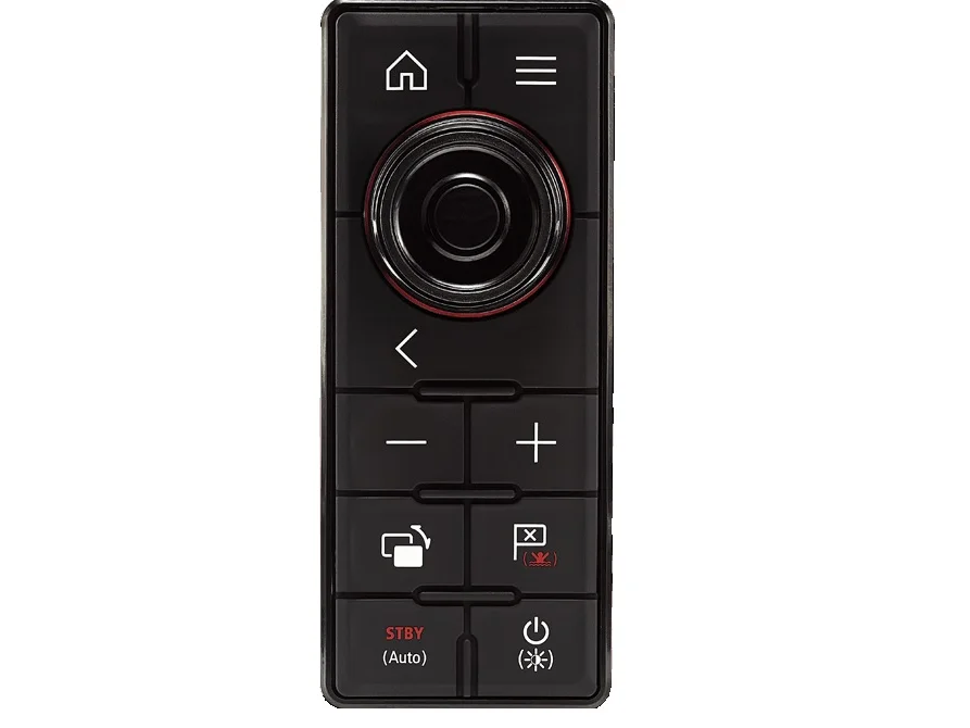 The fully backlit RMK-10 includes dedicated keys for home, menu, zoom in/out, window control, waypoint management, power/brightness, as well as Evolution autopilot control.