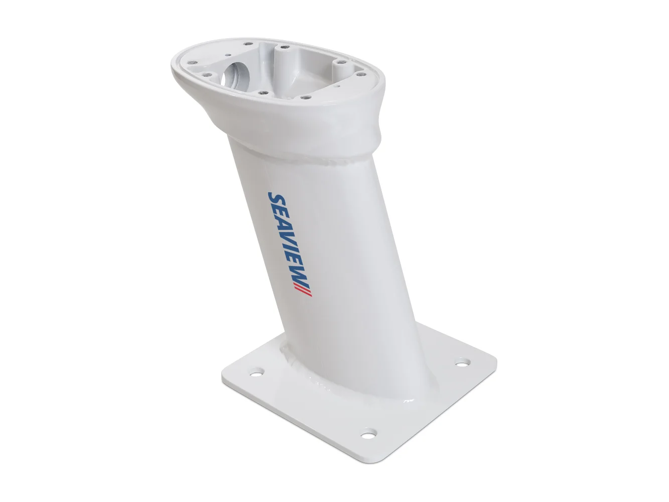 The10″ tall Seaview aft leaning mount for is Closed Dome Radars and small Satdomes (16″ diameter or smaller). The oval hollow mast section allows for easy cable management. The small 7″x7″ foot print design is a great solution for limited space. This modular mount is light bar compatible. This modular mount is light bar compatible. Numerous accessories are also available for this mount such as wedges, hinges, spreaders, lightbars and floodlights. *Please note that a Top Plate is required (sold separately)*