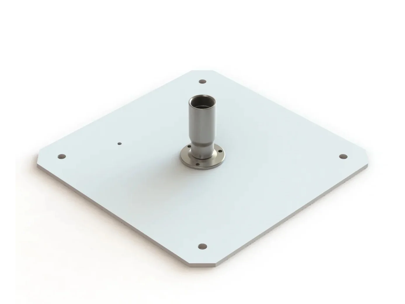 - 316L stainless steel Starlink adapter with a 1″-14 threaded fixed base on ¼" aluminum plate
