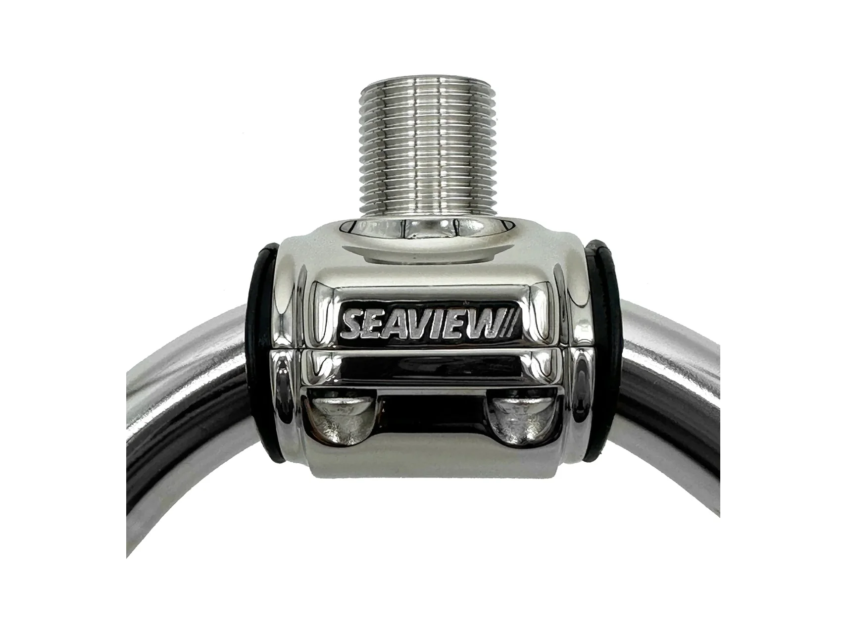 The Seaview 316 S.S. Rail Mount is designed to fit 1″, 1⅛" and 1 ¼" rails and is for mounting GPS, weather or VHF antennas. Cast of solid 316 stainless steel and comes with three different rubber bushings. The unique two-piece design clamps to a rail and keeps wiring completely hidden inside the mount and railing. The 1″-14 threads accept most common GPS or VHF antennas. This can also be used with the Starlink SV114STLK adapter.