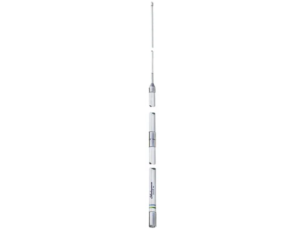 Three-section convenience, in an outstanding performer. The Style 393 antenna is electrically the same as the industry standard Style 390, but it’s designed in three sections, so it can be shipped conveniently by FED EX. For use in calm to moderate seas. Reinforced insulating qualities allow input power up to 1 kw. Conductors are permanently sealed in Shakespeare white fiberglass