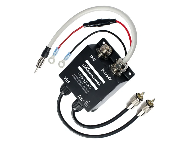With only one antena this splitter allows you to use VHF, AIS (Receive only), and AM/FM Stereo.