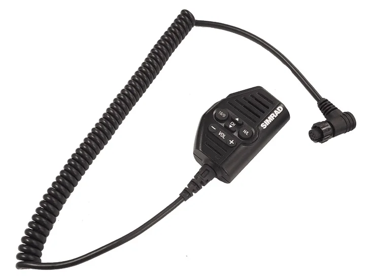Simrad RS40 Remote Mountable Fist Mic. Can be connected to the front or rear of the radio, and optional extension cable allows the radio and mic to be mounted in seperate locations.