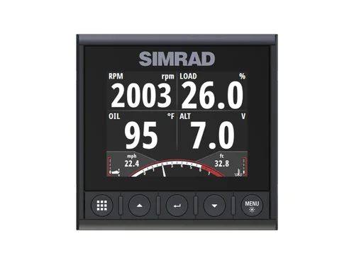 The IS42 is a smart multi-purpose instrument featuring a full colour display and modern glass helm styling. View wind, speed, depth, engine data, autopilot status and more at a glance, or add the optional OP12 keypad to take full control of your Simrad autopilot system. The IS42 integrates brilliantly with Simrad multifunction displays and glass helm systems, or can function as a standalone instrument display and autopilot controller aboard smaller vessels.