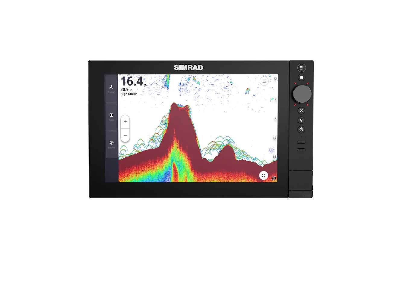 - Built-in dual channel 1kW CHIRP echosounder