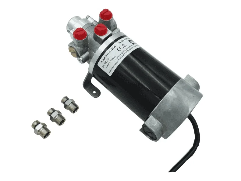 PUMP-5: 24V DC: Reversible hydraulic gear pump. 3.0L (183 cui) / min. For cylinder displacement of 290 – 960 cc (17.7 – 58.5 cu. in.). O-Ring Boss (ORB) connections. Includes 3 x ORB-5 to 9/16 UNF fittings. SteadySteer compatible. (NAC-3 / AC42 required).