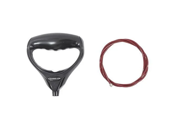 This trolling motor replacement release and lift system is a rugged, nylon jacketed stainless steel cable with a large comfortable cushioned grip handle which solves the problem of the cheap lift and release ropes on today’s trolling motors.