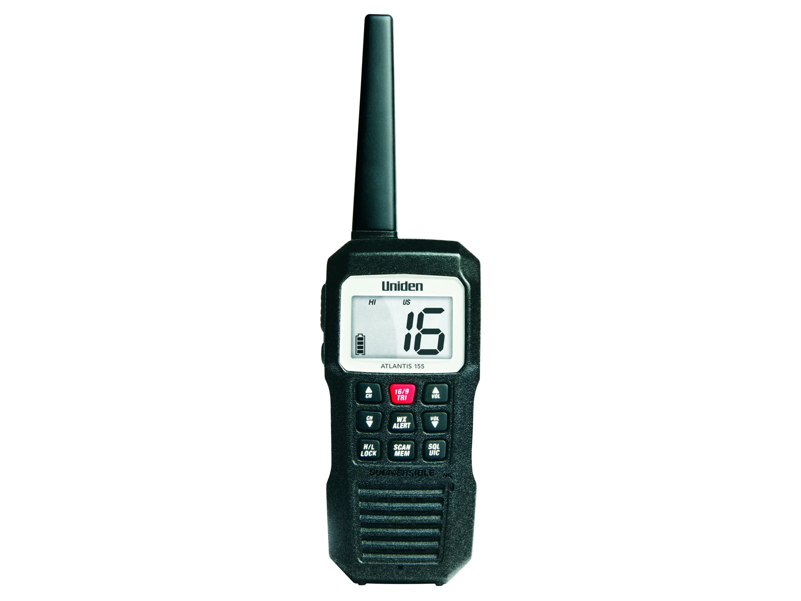 The Uniden Atlantis 155 continues Uniden’s tradition of providing tough and reliable handheld radios. It features all NOAA weather channels, as well as all USA, International and Canadian marine channels. It also meets JIS8 Submersible waterproof standards. The Atlantis’ brilliant backlit LCD display makes it easy to use, day or night for the power to go anywhere.