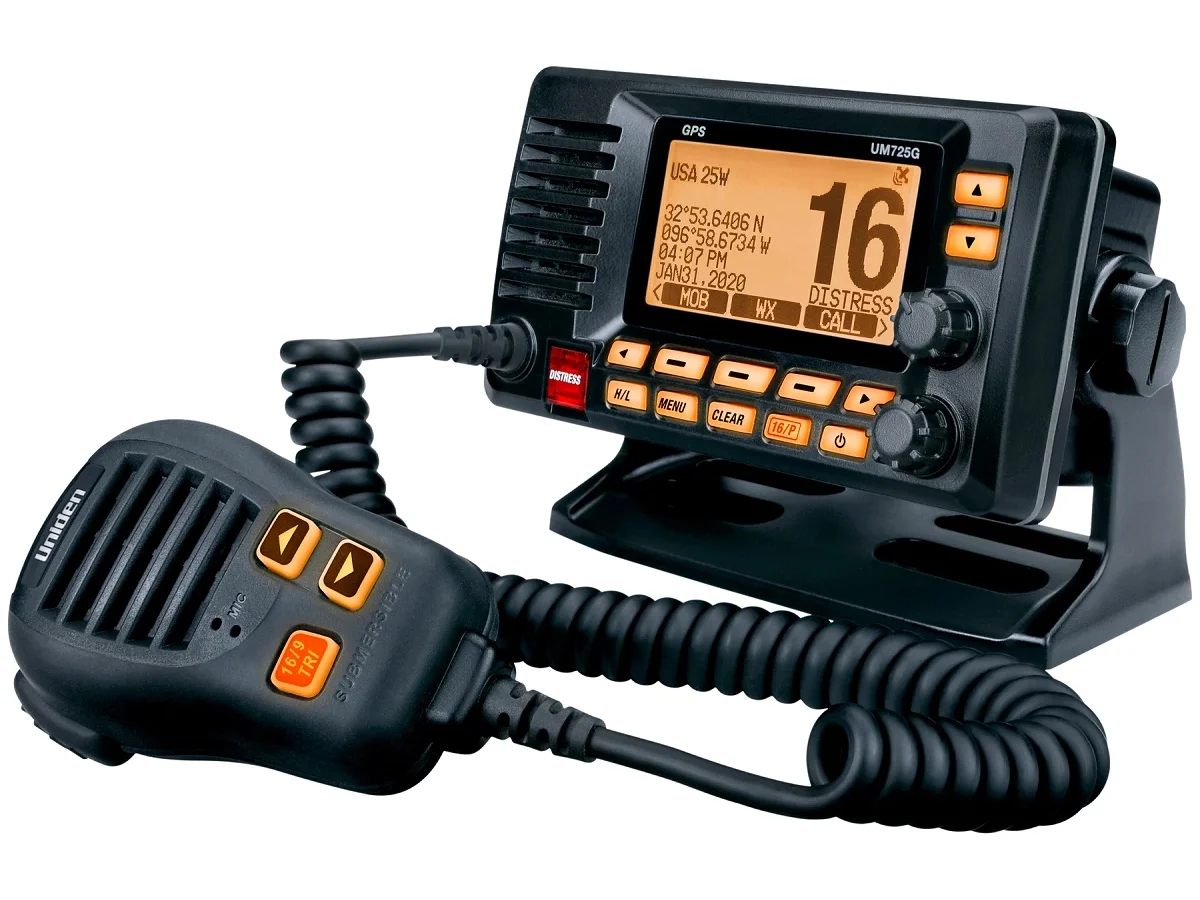 Uniden is the first to offer text messaging using marine VHF radio. You and your crew will enjoy the privacy of texting boat-to-boat, rather than broadcasting over your radio for all the boats in your area to hear. The UM725G marine radio comes packed with the latest features, including IPX8 submersible rating, Integrated GPS Receiver, NOAA Weather Channels, DSC Distress send and receive, NMEA0183 / NMEA2000, and speaker microphone equipped.