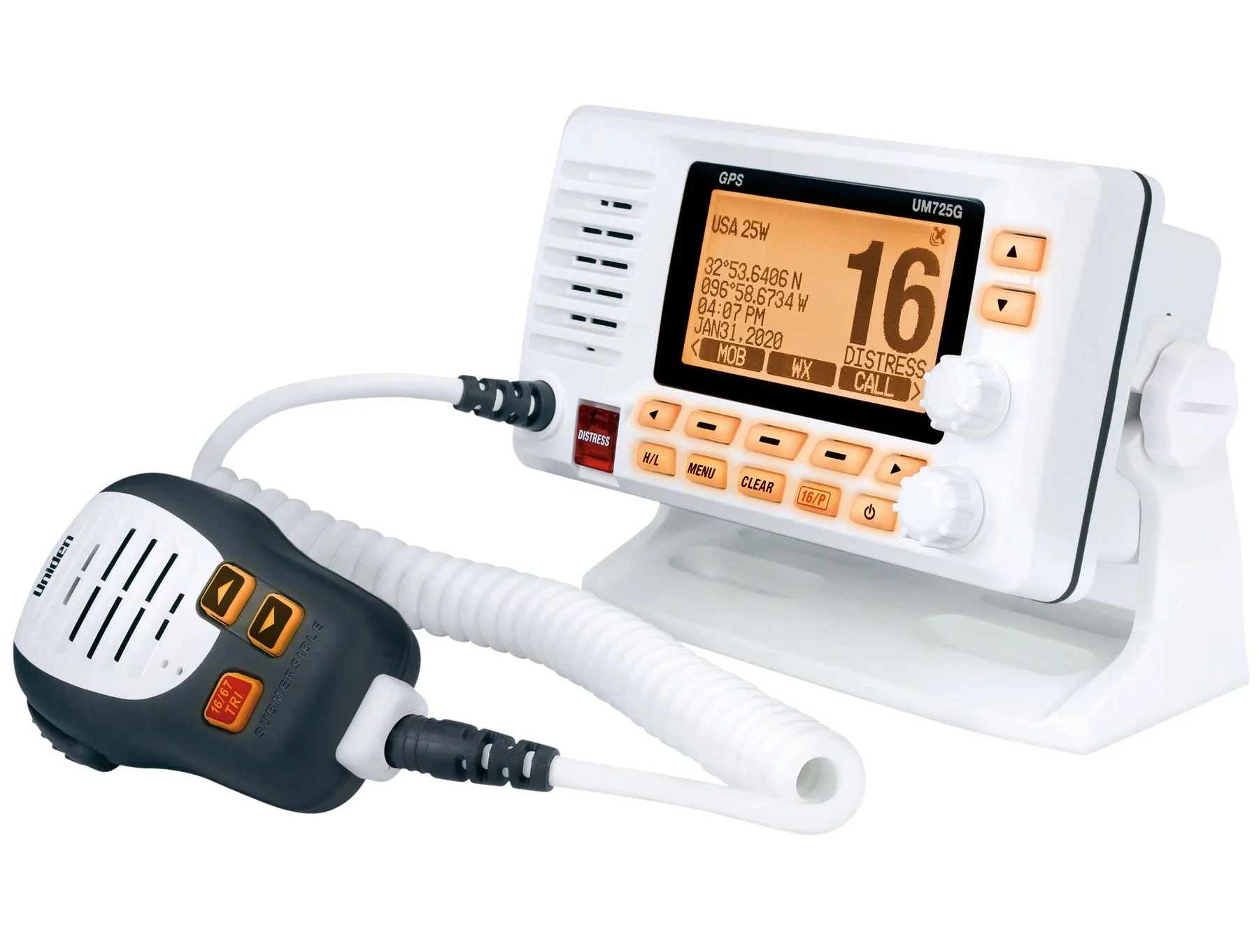 The UM725GBT is the first marine radio to offer Bluetooth wireless text messaging using your smart phone to text with a similarly capable marine VHF radio. You and your crew will enjoy the privacy of texting boat-to-boat, rather than broadcasting over your radio for all the boats in your area to hear. No more cell phone texting drop-off when you reach the range of your land-based cell tower. The UM725GBT marine radio comes packed with the latest features, including IPX8 submersible rating, Integrated GPS Receiver, Integrated Bluetooth Wireless, NOAA
