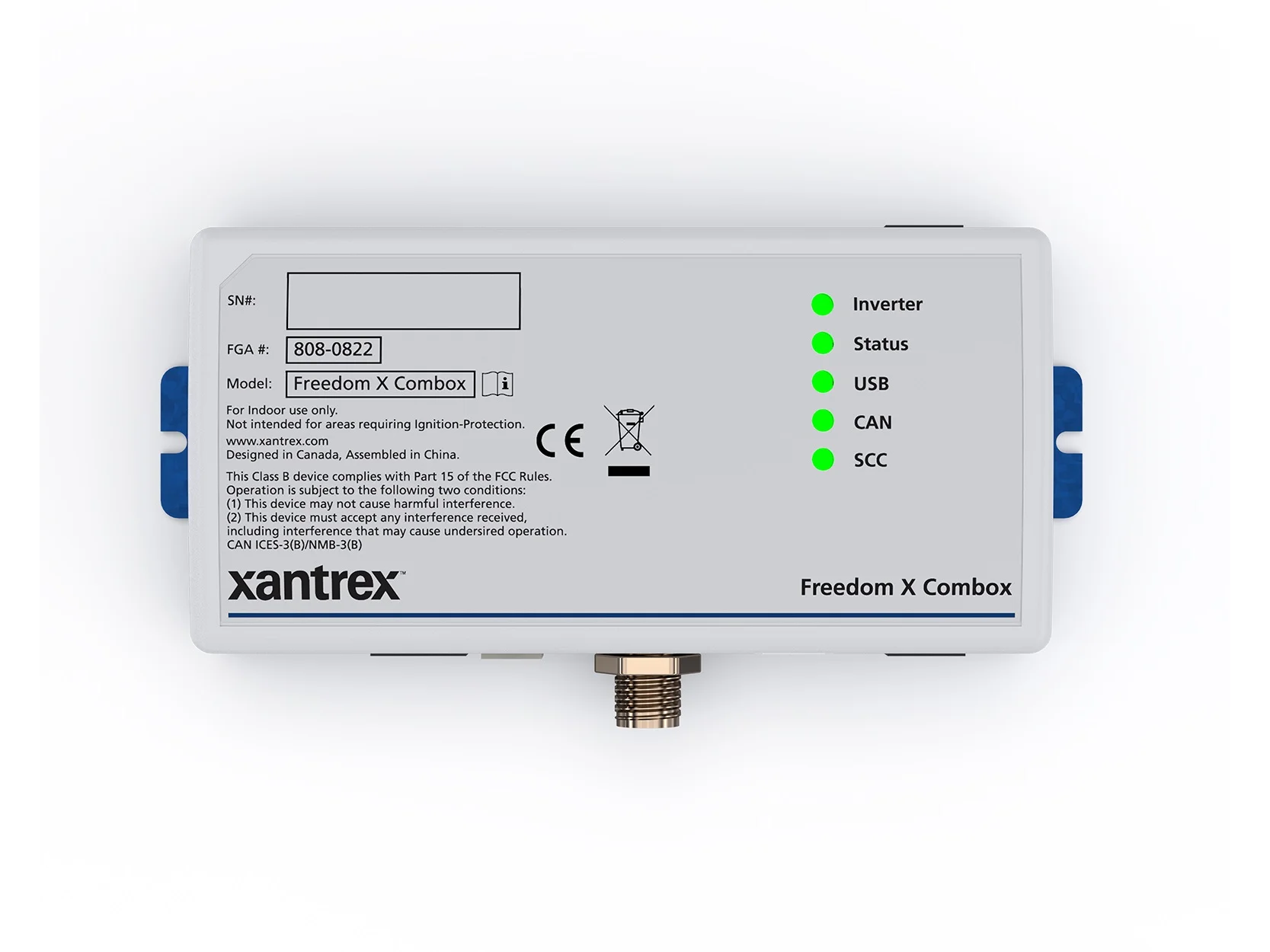 The FREEDOM X Combox connects the FREEDOM X and XC families of inverter/chargers to an RV-C or NMEA2000 bus to support seamless integration with third party monitoring and control systems.